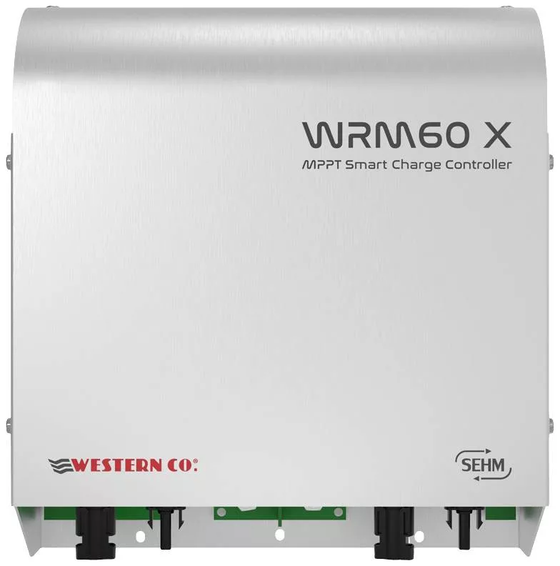 A WRM60 X egy intelligens töltésvezérlő a PV modulok akkumulátorainak töltésére, és háztartási vagy nagy szigetrendszerekben használatos. Alkalmas 24V/48V-os rendszerekhez, és modularitása lehetővé teszi a WRM60 hozzáadásával Valójában egy dedikált platform különféle funkciókat tesz lehetővé: a rendszer figyelését, vezérlését és kezelését. Ez a modell egy PV modul maximális teljesítményű kereső áramkörét (MPPT) valósítja meg, és lehetővé teszi két független PV string kezelését. Kompatibilis a BMS-sel felszerelt akkumulátorokkal (CAN kommunikációval), vagy a hagyományos akkumulátorokkal a Western Battery Monitor (WBM) segítségével.