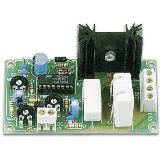 Ez a vezérlőáramkör ideális egyenáramú motorok, világítási szintek, kis fűtőberendezések és egyéb alkalmazások pontos szabályozására. Az áramkör az egyenfeszültséget impulzusok sorozatává alakítja, így az impulzus időtartama egyenesen arányos a DC feszültség értékével. Egy ilyen áramkör nagy előnye, hogy a vezérlőáramkörben szinte nem vész el a teljesítmény. Túlterhelés és rövidzárlat ellen védett.