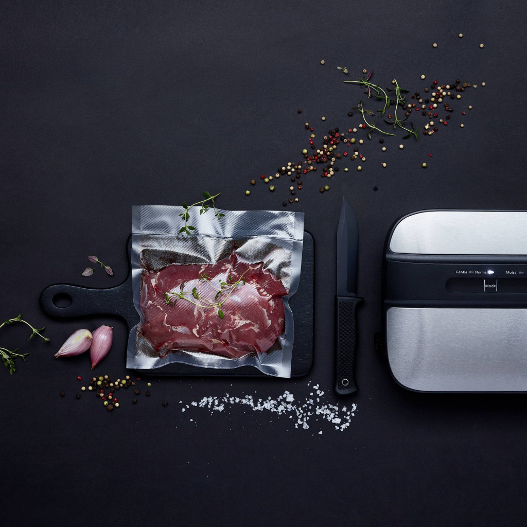 A Wilfa MOOSE VS0824S vákuumtömítő minden funkcióval szolgálhat, amire szüksége van egy vákuumtömítőben. A "Száraz" és "Nedves" opciókkal kiválaszthatja a beállítást az étel típusának megfelelően. A praktikus pácolási program a halnak vagy a húsnak tökéletes ízt ad. A pácot a húsba masszírozzák, és csodálatosan pácolt terméket kap. A vákuumtömítés kettős tömítése szintén előny. A megbízható vákuumzáró rendszer biztosítja, hogy a zsák teljesen bezáruljon, és hogy ne kerülhessen több levegő bele. Ezenkívül a porszívózásra szánt műanyag tekercsek könnyen tárolhatók az intelligens tárolóhelynek köszönhetően. A dobozos programnak köszönhetően nemcsak a táskákat, hanem a dobozokat is lezárhatja.