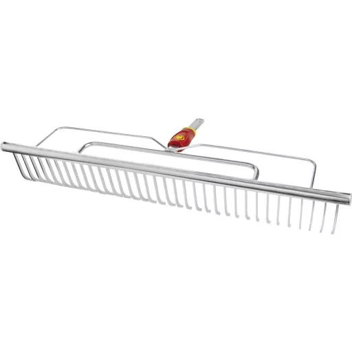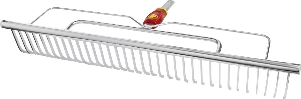 Nem mindig áll rendelkezésre beépített fűgyűjtővel ellátott fűnyíró. Annak érdekében, hogy a gyep ne rohadjon a nyesedék alatt, illetve ne terjedjenek gombás betegségek és kártevők, elkerülhetetlen a lenyírt gyep gereblyézése. Ez a finom fogakkal rendelkező gereblye új gyepek telepítésekor a talaj elegyengetésére is használható. Ezzel a multi-star® gyepszellőztetővel a munka gyerekjáték és hatékony a kényelmes, 58 cm-es munkaszélességnek köszönhetően. A felső végén található konzol szilárdan tartja a levágott anyagot, a külső fogak pedig különösen stabilak az extra edzésnek köszönhetően. A multi-star® tartozék kompatibilis az innovatív, különösen egyszerű kattintásos rendszer számos fogantyújával, így a hátkímélő munkavégzés mindig garantált.