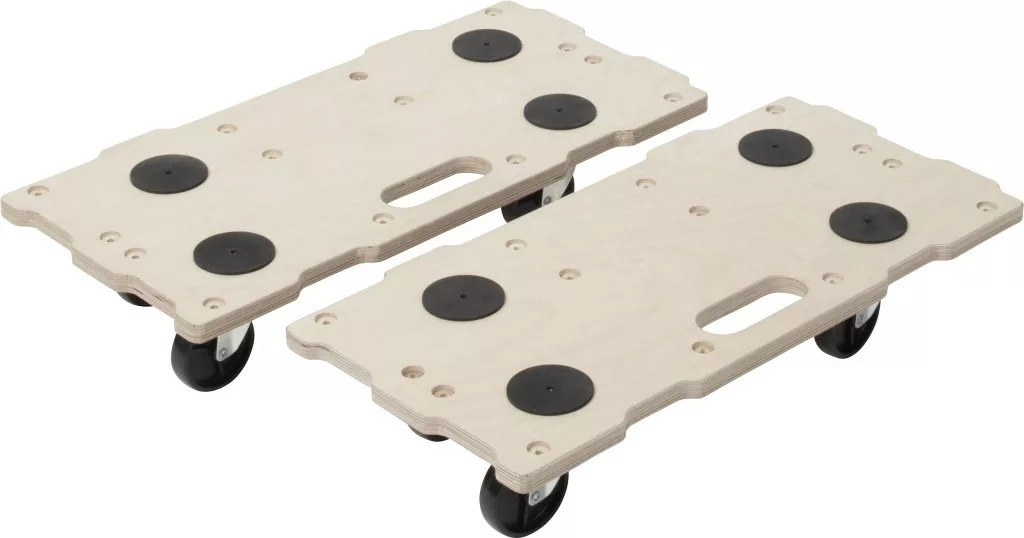 Jellemzők: külön-külön felhasználható és 200 kg-ig terjedő moduláris rendszerre osztható. Kiegészítő tartókkal és táblákkal bővíthető, kiváló minőségű, tartós nyírfa rétegelt lemez, vízálló ragasztott ergonómiai süllyesztett markolatok, biztonságos tartás, 4 csúszásgátló párnával, mindegyiknek köszönhetően a 4 golyóscsapágy 360 ° -os kerékkel ø 75 mm ideális eltávolításhoz, otthoni és kerti méretek: 590 x 120 x 290 mm.