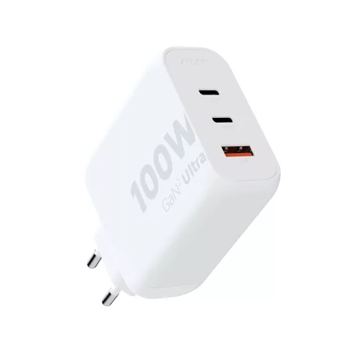 Műszaki adatok: Bemenetek (dugótípus): Euro dugó · Gyártói szín: Fehér · Kimenetek: 2x USB-C®, 1x USB-A · Kimenetek száma: 3 x · Méret, magasság: 61 mm · Méret, szélesség: 30 mm · Súly: 209 g · Teljesítmény: 100 W · Tápegység jellemzők: GaN · Töltési technológia: Quick Charge 3.0