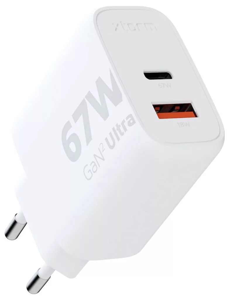 Műszaki adatok: Bemenetek (dugótípus): Euro dugó · Gyártói szín: Fehér · Kimenetek: 1x USB-C®, 1x USB-A · Kimenetek száma: 2 x · Méret, magasság: 46 mm · Méret, szélesség: 28 mm · Súly: 88 g · Teljesítmény: 67 W · Tápegység jellemzők: GaN · Töltési technológia: Quick Charge 3.0