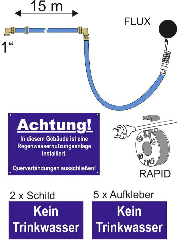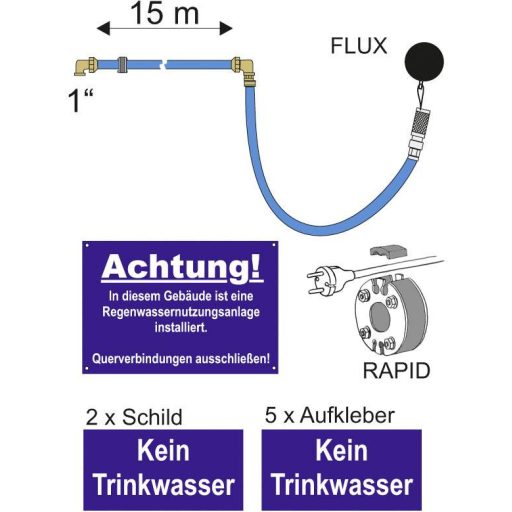 Szállítás tartalma: Csatlakozási készlet, 2x "Nincs ivóvíz" felirat, 5x matrica "Nincs ivóvíz", 1x tábla "Ebben az épületben ...".